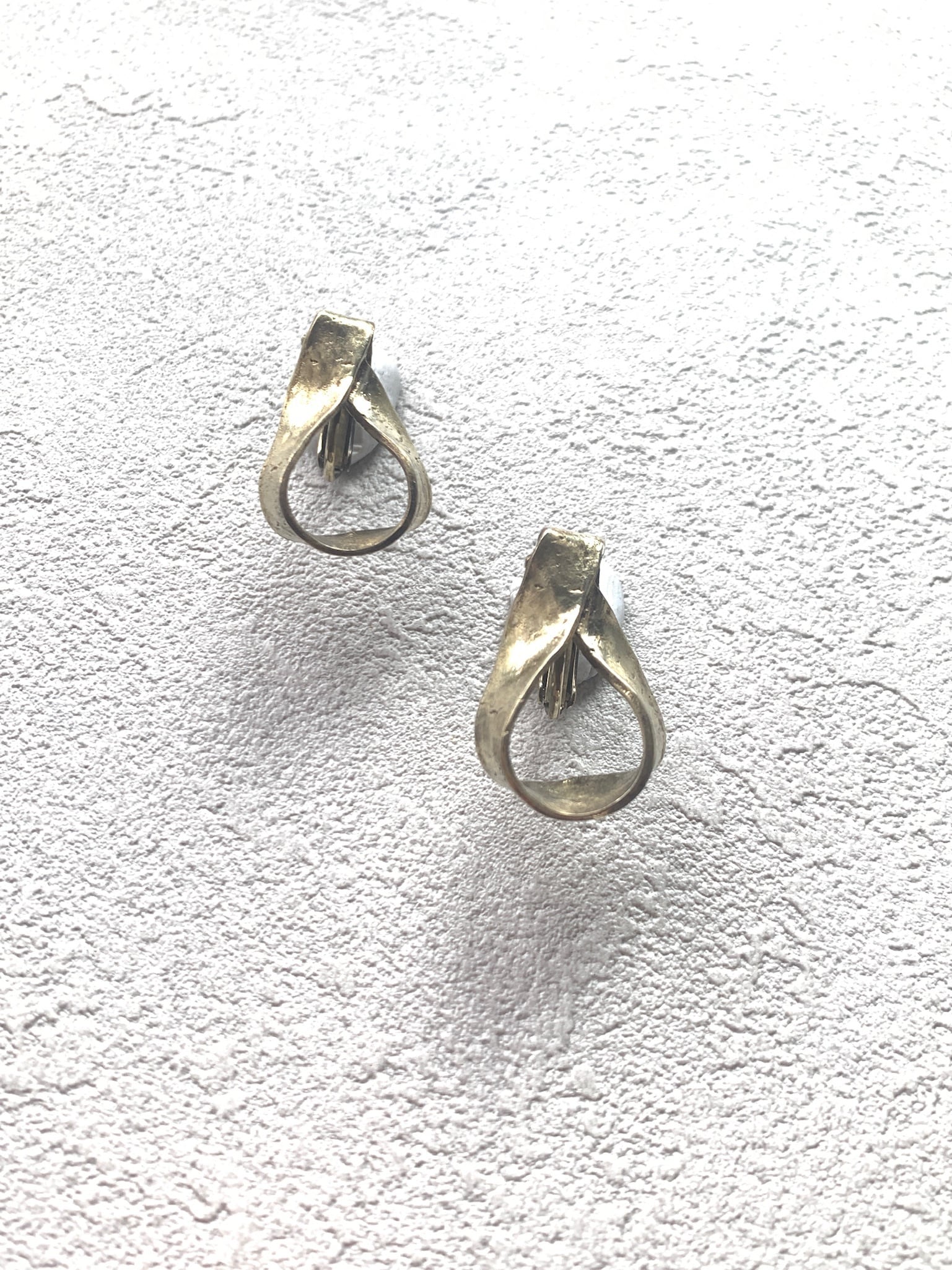 メビウスシリーズのピアス / イヤリング。 アンティーク加工を施し、ざらっとした感触に仕上げた真鍮のボリューム感が顔周りを華やかに。 material : 真鍮 (ピアスポスト : チタン) length : about 3cm