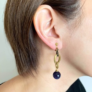 素材 : キャッツアイグラス、真鍮、イヤリング : 真鍮、ピアス : チタン